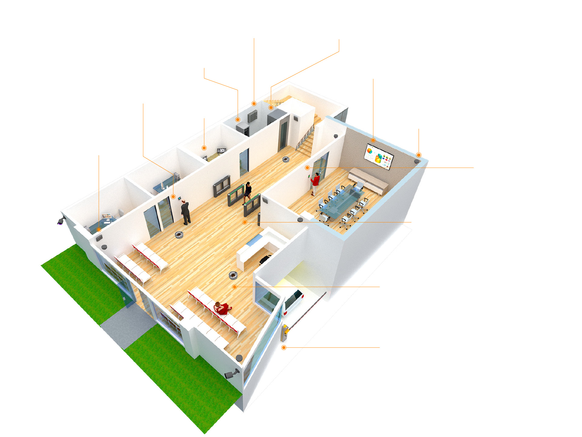 Contamos con diferentes soluciones que cubren las diversas vulnerabilidades que puede haber en una corporación. Desde el control de asistencia auxiliado por un sistema de credencialización, control de acceso a espacios restringidos, control de visitantes, videovigilancia IP, sistemas de alarma, sistemas de incendio y control vehicular. Todo enfocado a mantener el espacio de trabajo como un ambiente seguro para su personal.
